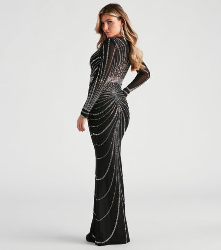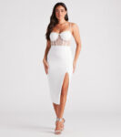 Create an enchanting homecoming or prom look that radiates elegance and grace in our Adalyn brocade dress! She features a classic scoop neckline, padded cups, spaghetti straps that lead to a cross-back lattice design, a high waist seam, and a flowy, floor-length, A-line silhouette with a high slit. The dress is composed of a lined textured woven knit fabric with a minimal stretch. Her brocade print elevates and pairs beautifully with gleaming rhinestone jewelry and sleek stilettos.