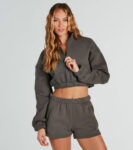 Get ready for chill vibes in this cozy crop sweatshirt! It features cozy long sleeves with elasticized cuffs, a mock neckline with a half zip closure, an elasticized cropped hem, and a warm fleece lining. Complete the look with the trendy matching shorts for lounging or running errands!