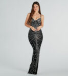 Flaunt your diva allure in the Zuri formal sequin dress to make a grand debut at school dances, sweet sixteens, or banquets! She features a strapless neckline with a statement feather bust, non-slip grip lining, and a flattering mermaid silhouette, high side slit, and floor-length hem. The formal dress is composed of a light-catching sequin embellished fabric with a stretchy knit lining. Complete the look in this long sequin dress with platform stiletto heels.